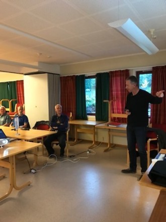 Jan Petter Wigum, høgskolelektor v. HiNT avdeling for trafikklærerutdanning forteller med stor entusiasme om aktuelle lover, regler, tips og statistikker rundt trafikkopplæring. Oppmøte på 85% av medlemmene på møtet ga mange komentarer og spørsmål til Wigum- som besvarte og utdypet temaet på beste måte.