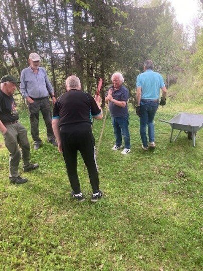 04.06.2024 Dugnad på turstien i Forbordåsen. 9 av våre medlemmer møtte opp i fint sommervær. I tillegg hadde Trygve med seg barnebarnet med litt maskinelt utstyr. Vi var heldig med været for det var regnværsdager både før og etter. I dag ble det ryddet på ny sti til Kleivberget.