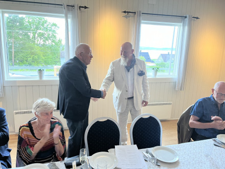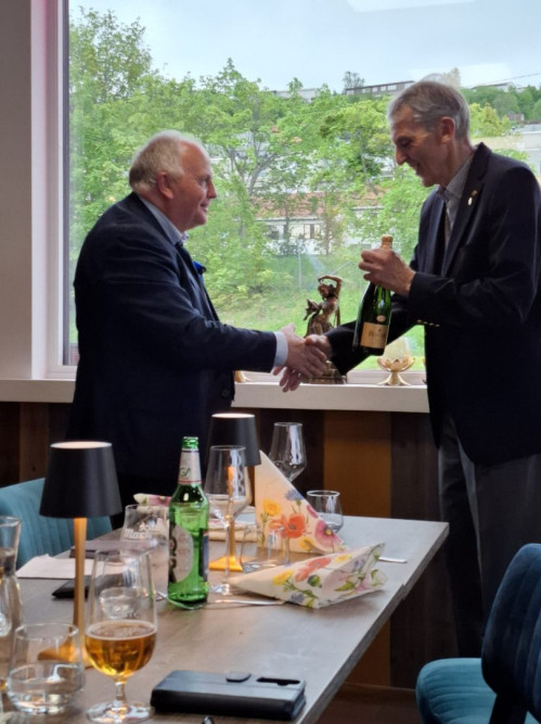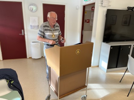 18.06.2024 Presidentskifte. 15 av klubbens medlemmer med ledsagere var til stede. I tillegg var det 5 gjester. Knut Radmann ble tatt opp som ny medlem i klubben. Sermonien foregikk i hyggelige omgivelser på Midtsand Grendahus der festkomiteen serverte nydelig grillmat med kaffe og godt tilbehør.