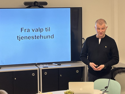 09.04.2024 Fordrag ved Arne Hammerfjeld "Fra valp til tjenestehund". Referat fra møtet kan du lese her