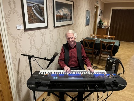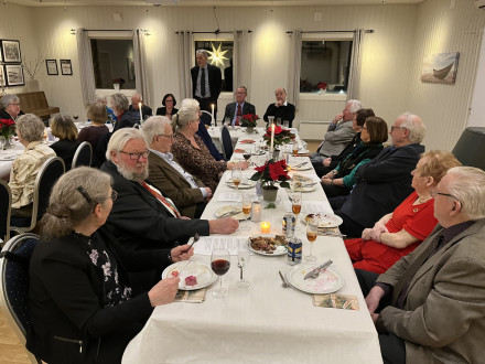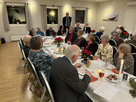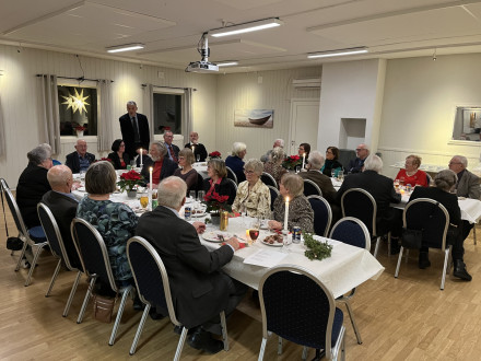 19.12.2023 Juleavslutning på Midtsand Grendahus for medlemmer med ledsagere. Målfrid og Aud var invitert. Prest Jørg Kuzendorf var også invitert og kåserte om julen og spesielt adventskransen tilblivelse. Det spesielle med en krans er at den har ingen begynnelse eller slutt, den er evigvarende.