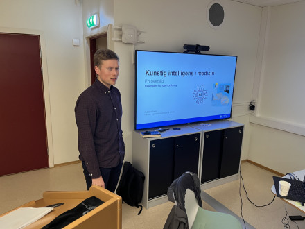 27.02.2024 Fordrag ved Medisinstudent Sigbjørn Sæbø om Kunstig Intelligens i medisin - revolusjon eller boble. Referat fra møtet kan du lese her. Presentasjonen kan du se her