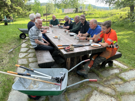 27.05.2025 Dugnad Mostadmarka Minnealter. Flere bilder finner du under "Prosjekter"