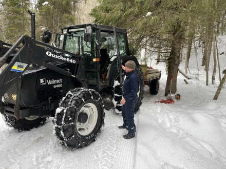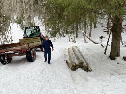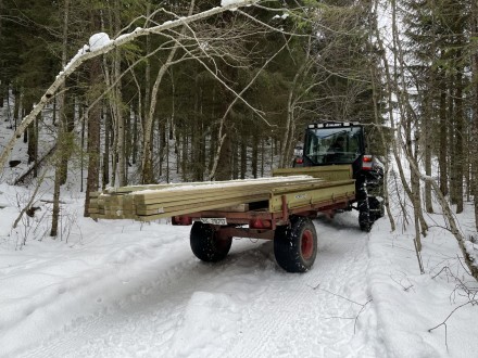 Trygve og Terje k har hentet plank hos kommunen som bl.ir lagret hos Trygve for kjøring opp i Forbordsåsen vinteren 2023